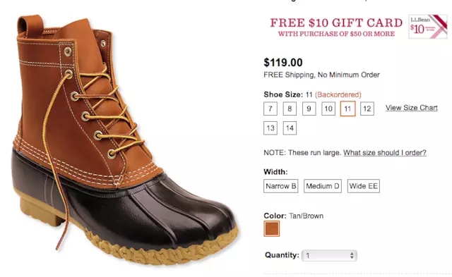 去年,L.L. Bean 新聘了 100 名工人来满足暴增的订单,但仍然产生了大量延迟交付的订单,直到今年7月才全部生产完毕,最高峰时它们手上欠的鞋子有 5 万双。即便现在,L.L. Bean 官网上的抢手尺码也依然显示“延迟交付”的字样。